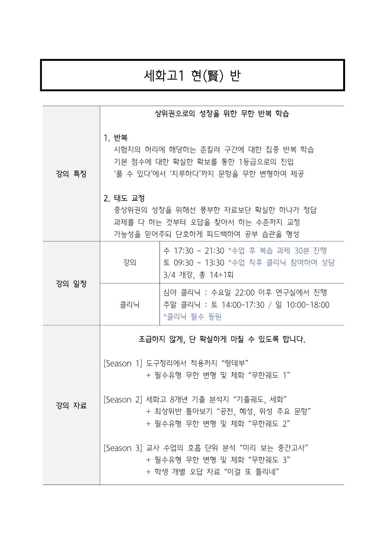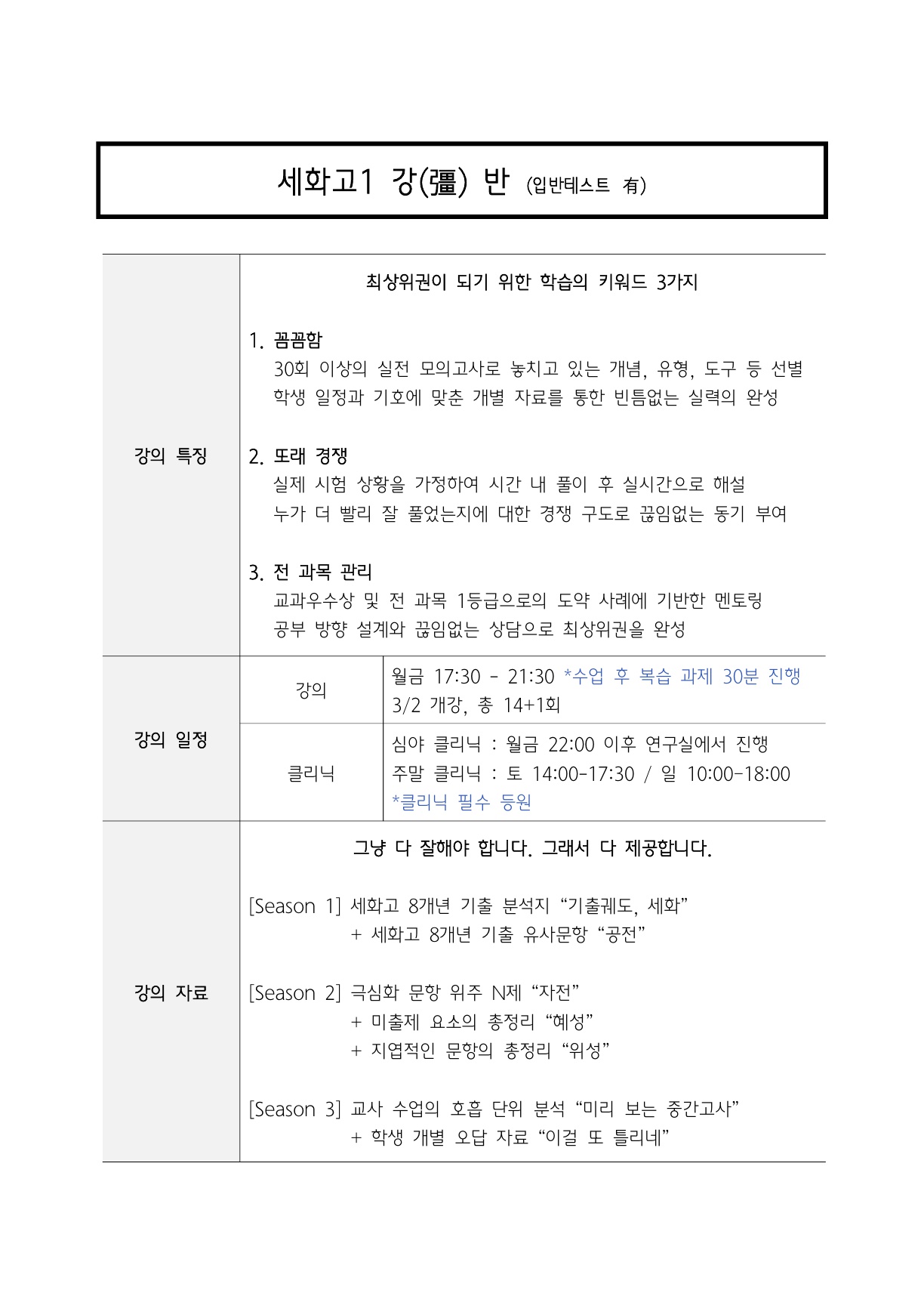 -(청담고 실전 테스트 진행 미통과시 수업 이후 필수클리닉진행)